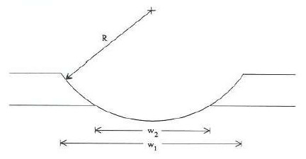 One rudimentary way of calculating junction depth is the groove-and-stain method. After grinding a shallow cylindrical groove into the substrate surface, a dye is applied that only reacts with one type of present impurity, staining that area. There will then be two distinct areas: one dyed and one plain. The junction depth can then be found using basic geometry: