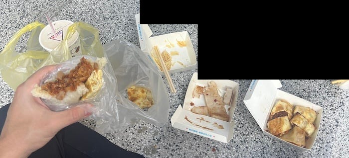 I’ve never read Chinese characters before. For whatever reason I incorrectly assumed there would be a pretty standard font, but nope, turns out they have their own Calibris and Arials and Times New Romans for us foreigners to struggle with! My first run-in with this was at a breakfast spot we had already visited. The first time we went a very kind Taiwanese-American woman helped us order, showing us the where the pictured menu items were on the actual text-only order ticket itself. Easy peasy. I came back a few days later, confident that I could replicate it. Nope. I spent 10 minutes meticulously comparing the menu to the ticket to find exactly what I wanted. Damn you and your beautiful fonts, Taiwanese typographists!